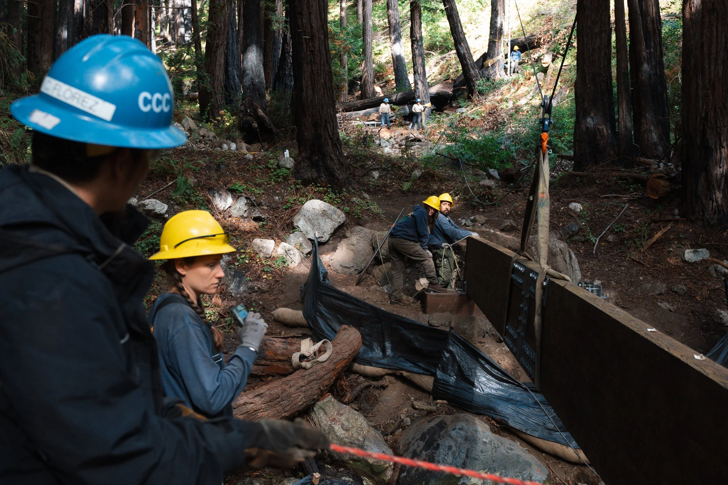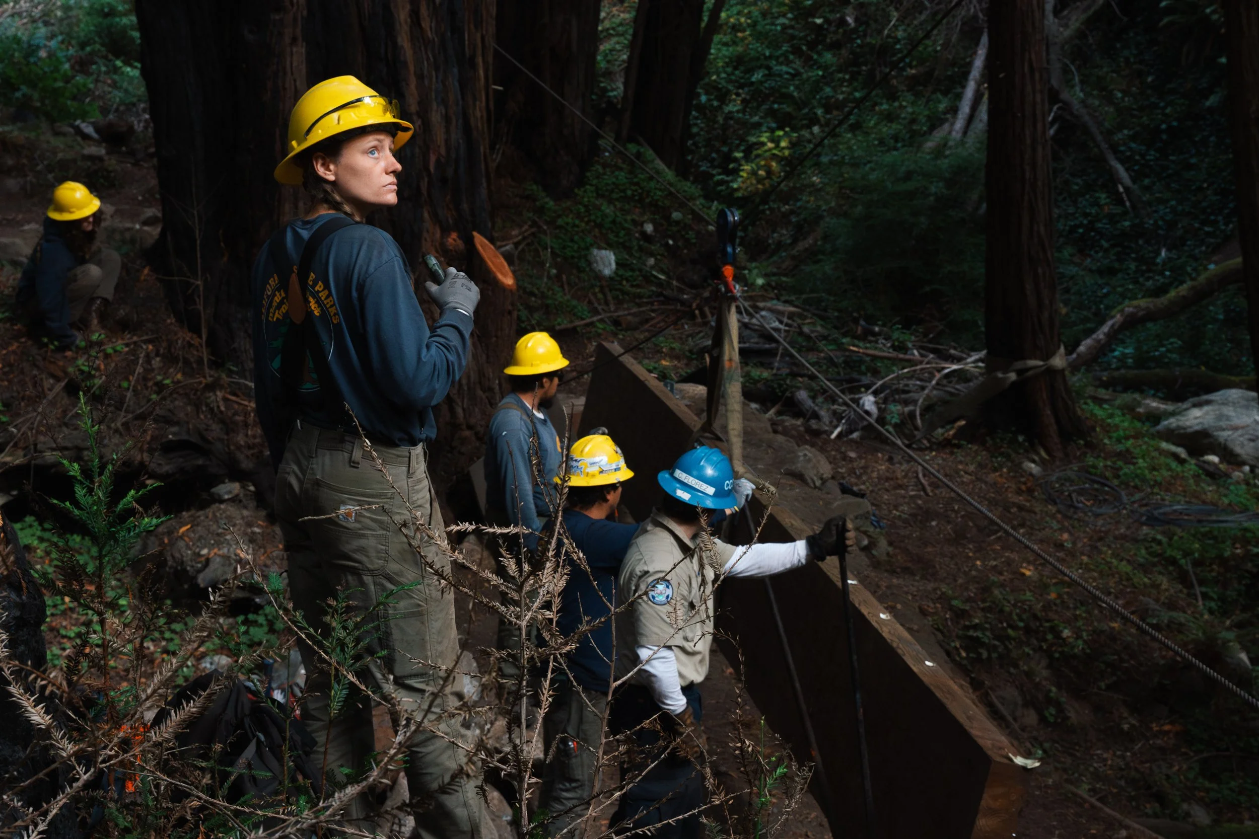 BIG SUR. The name alone conveys a certain aura of mystery, perhaps because the gloomy redwood forests, steep mountains, and treacherous cliffs of the region hide all kinds of secrets. Tucked into one of these forested nooks is Lime Kiln State Park, where I met the crew from California State Parks (Monterey District) and the California Conservation Corps (Inland Empire) back in October.