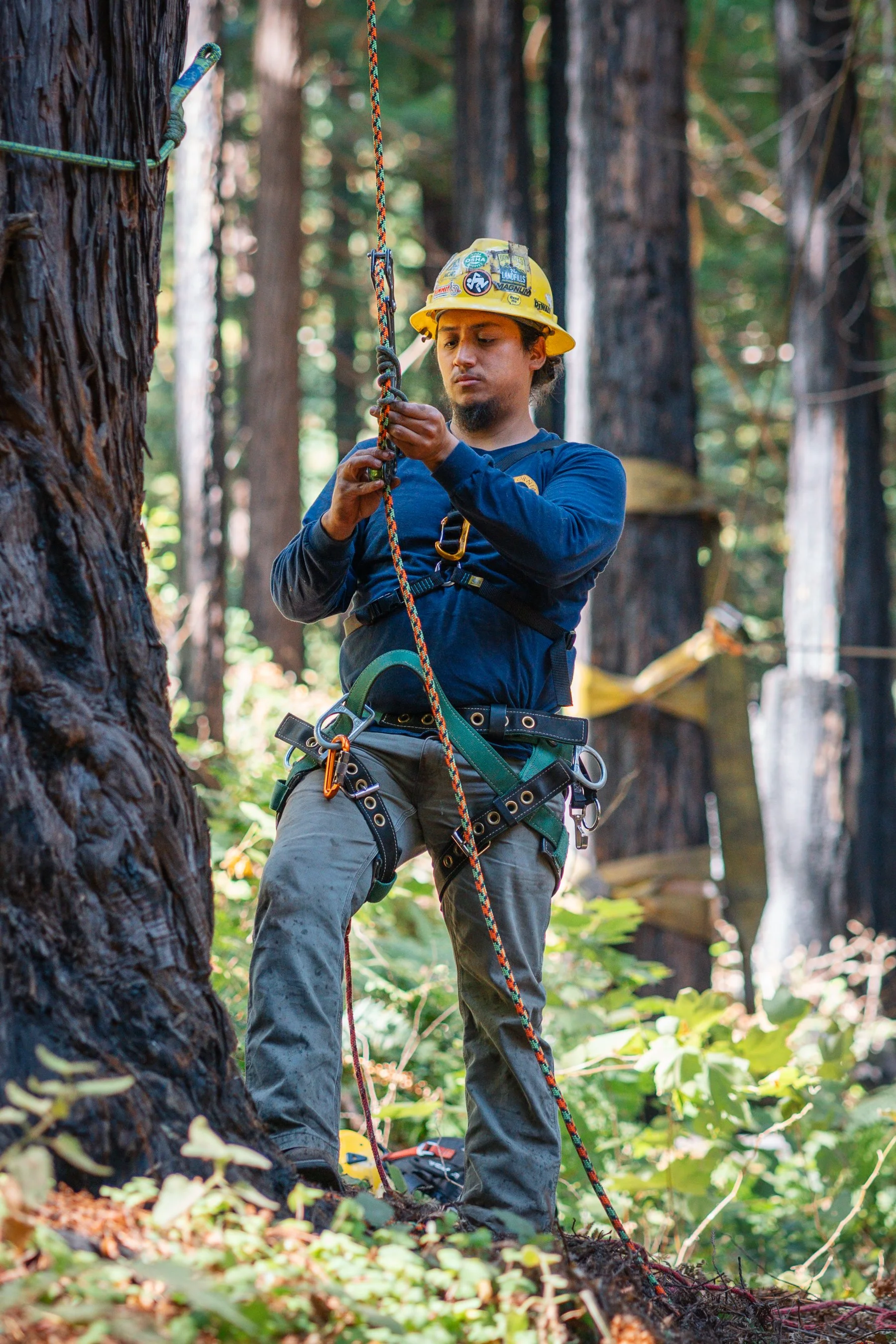 I was particularly excited to see how they set up their highlines. Crew members from the state parks crew are trained on tree climbing using Swedish tree ladders. Apparently nobody manufactures these ladders any more, and the crew’s inventory of ladders are maintained and repaired in-house, including by state parks crew member Gerardo.