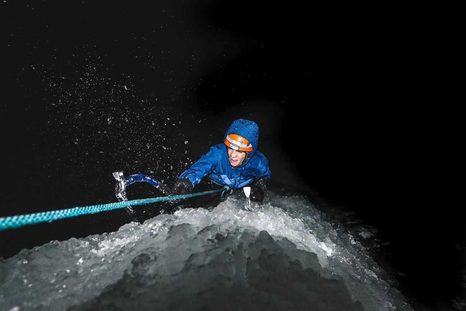 “Ice climbing is another hobby of mine. Night ice climbing is so fun and provides a cool perspective for photos. While I was taking this shot my fixed line froze over which made rappelling off quite scary.”