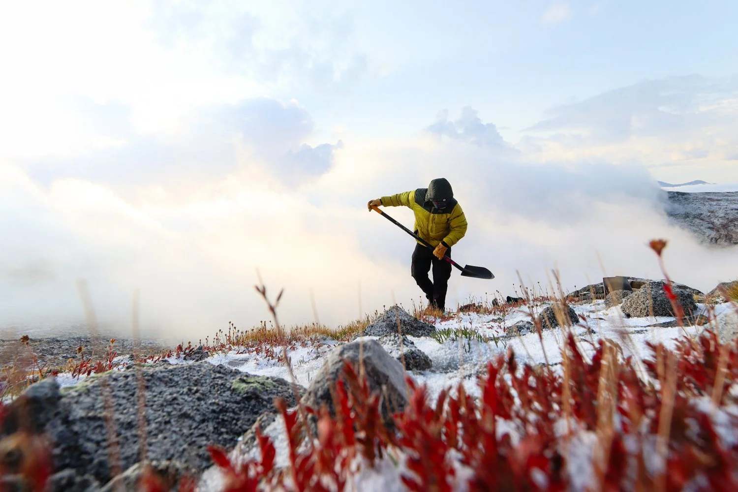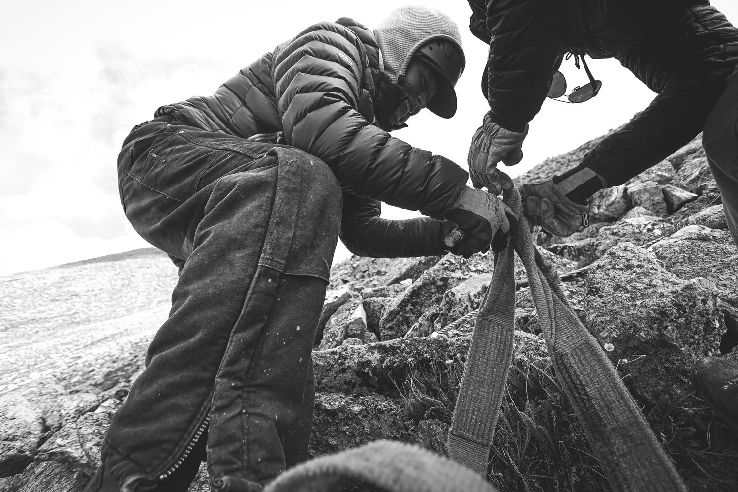 “This is a shot of slinging up a boulder to pull uphill on the griphoist. Even though the work is tough we kept the jokes alive and smiles on our faces.”