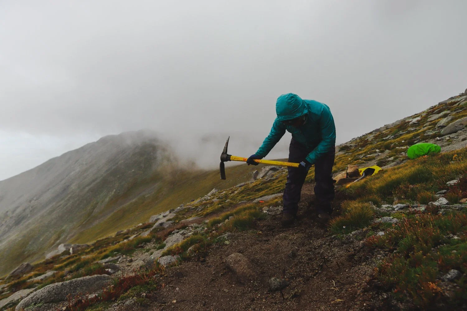 Colorado Fourteeners Initiative is one of the most badass trail crews anywhere. Most of their worksites are above 10,000 feet in intensely rugged and exposed environments. Often working above treeline in alpine talus fields, the majority of their work involves wrangling enormous boulders into staircases and walls. They are very good at what they do.