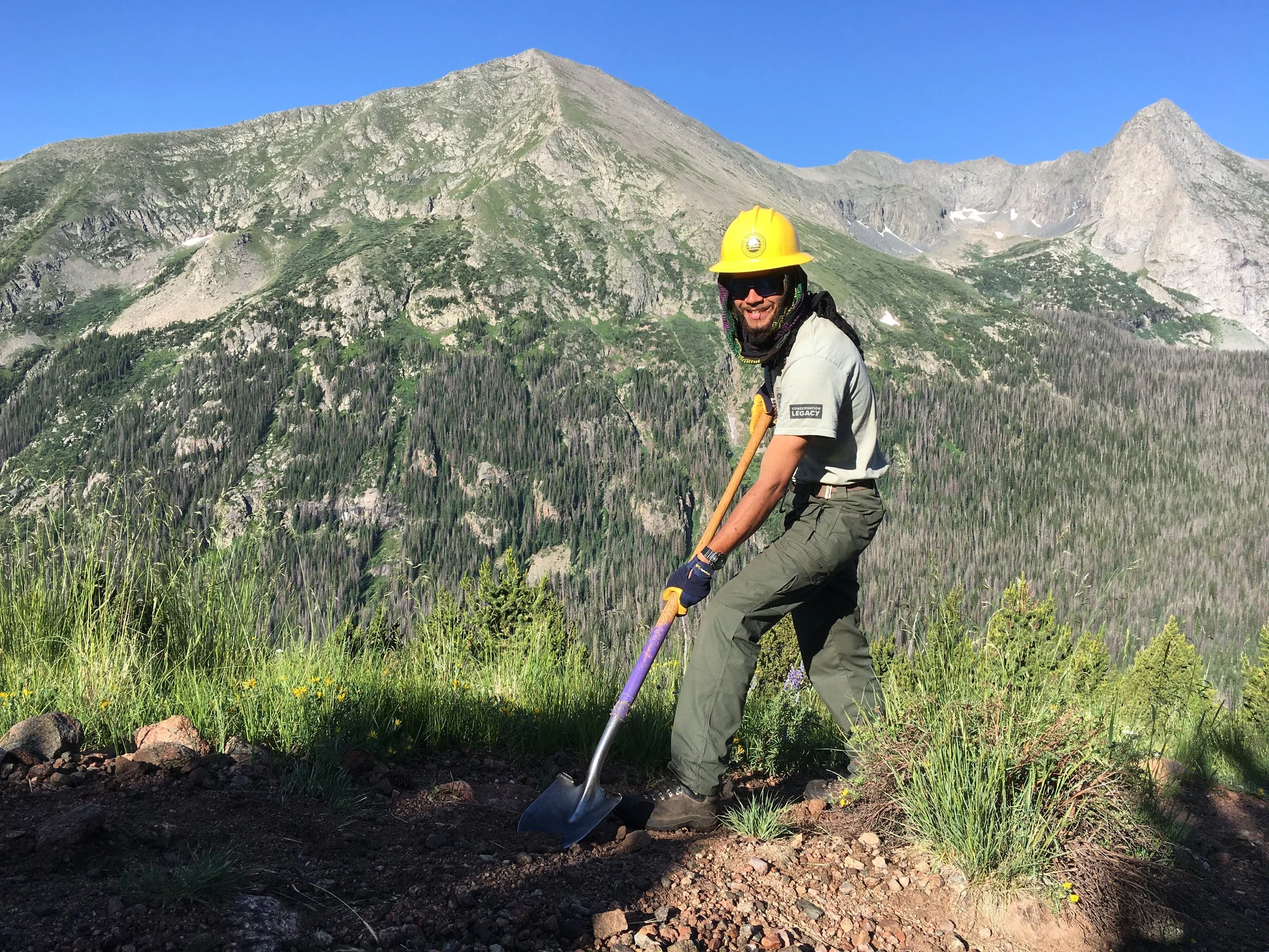So I took that ticket and I went to Colorado. And I applied to the Southwest Conservation Corps (SCC) Los Valles office for the Fourteener Crew. I didn't know what a fourteener was. I didn't realize that it meant a mountain over 14,000 feet until I was hiking up one. I'd never seen those before. So I did a fourteener season my first year with SCC in 2019. Following that, there was no going back for me. I knew I wasn't going to grad school for philosophy or whatever to sit up in the ivory tower. I thought, this is a way I can be of service and have an impact on the world.